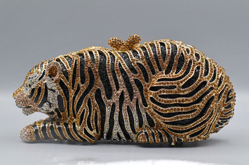 High quality luxury clutch bag with a metal frame. This piece is handmade and beautifully crafted. It is ideal  for wedding, baby christening, prom, gift for loved ones or any special occasion.  This bag is embellished with rhinestone  and also has a  metal shoulder strap. The lenght is about 7 x3x2; and it is packed in a black elegant box.